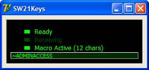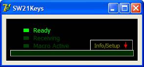 Click the “Run” button to return to the “Ready” mode. SW21 Keys is now “Ready” to receive keyboard macros. It will not respond until it receives a ‘macro start’ key. Then it will continue accepting keys until the ‘macro end’ is received.