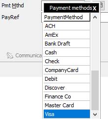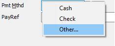 2. In either form tab to the AMOUNT field and enter the amount of the payment 3. Tab to the PAYMENT METHOD field and select Other from the dropdown list. Then select the Credit Card type you will be entering. 4. Click