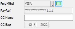 5. Tab to the PAYMENT METHOD field. The Credit Card that was used to originally charge the customer will appear in the list, select it.