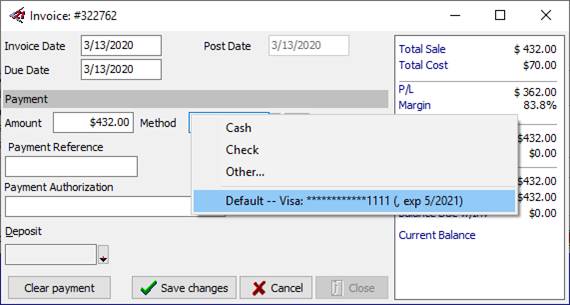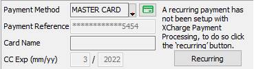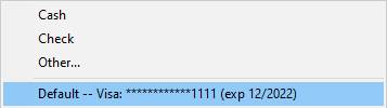 10.The Credit Card information that you have entered will now be available for you to select from the Payment Method dropdown list when processing a payment for the customer.
