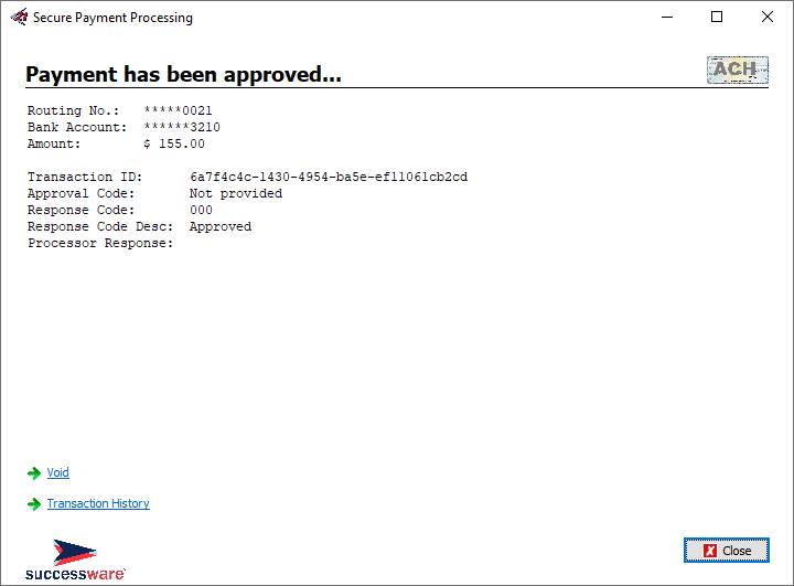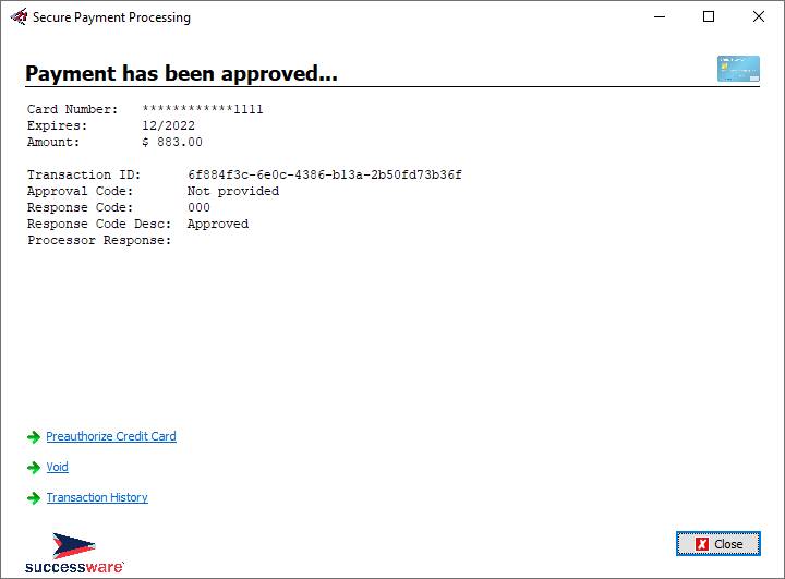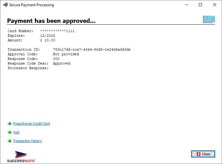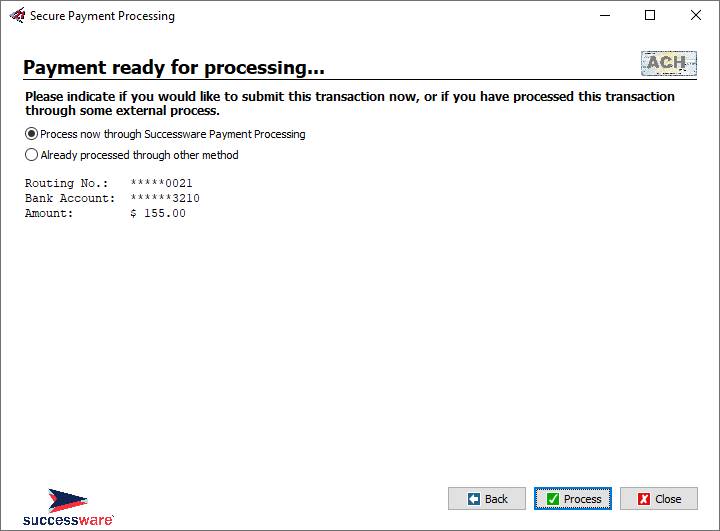 All payments processed through Successware Payments, both