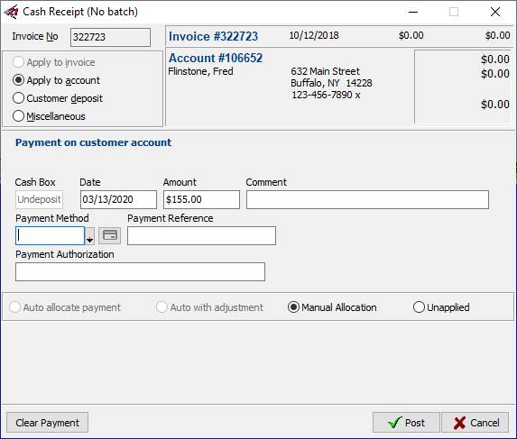 from the Invoice Payment Form accessed from an unposted invoice and the Cash