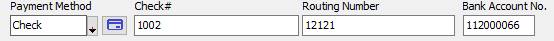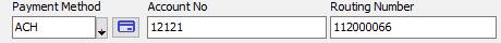 as process electronic checks from either of the payment processing forms. In order to process an ACH transaction you will use a Payment Method that has a Payment Type of Funds Transfer. You will require the Bank Account number and the Routing number of the account. If you have received a check payment from a customer, you can process the check through your ACH Account. You will require the check number, the account number and the routing number from the check. 1. From the invoice screen, click the Apply Pmts button to access the INVOICE PAYMENT FORM, or from the customer’s BILLING ACCOUNT HISTORY form click the Receipt button. 2. Enter the AMOUNT of the payment 3. Select the PAYMENT METHOD drop down and select either Check if you have received a check payment or select Other and then the payment type you have set up for ACH transactions. a. If you selected ACH (Funds Transfer), enter the Routing Number and Bank Account No.