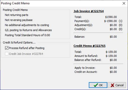 you are crediting or from the customer’s billing account. 1. From the invoice form, click the dropdown that appears after the invoice number and select New Credit Memo. From the Billing Account, highlight the Invoice you are crediting and click the Credit button at the bottom of the screen. 2. Work through the Credit Memo Wizard and post the Credit Memo once completed. 3. You will be returned to the Credit Memo Wizard with an option to PROCESS A REFUND AFTER POSTING. Click OK.