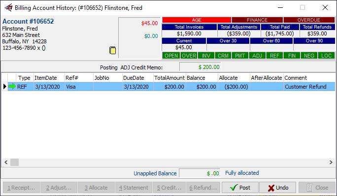 23.Click Post 24.The Credit Adjustment will be allocated to the Refund which will no longer display a balance.