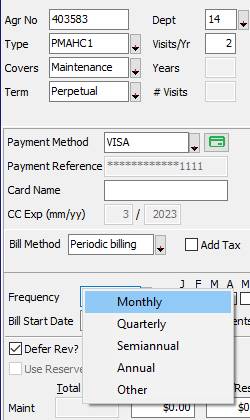 the AGREEMENT FORM and begin to complete the information. 2. In order to be eligible for recurring billing, the agreement must have a BILL METHOD of Periodic Billing and the FREQUENCY of the billing set to something other than “Other”