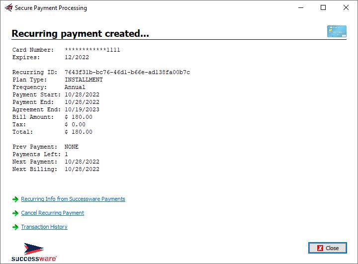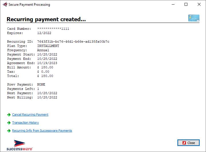 payments made via Successware Payments. These recurring charges can be