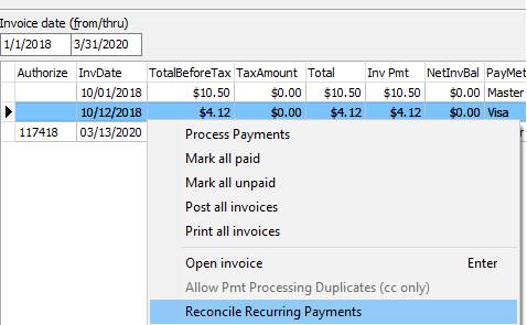 your Periodic Invoices. 2. In your list of periodic invoices, right click and select Reconcile Recurring Payments.