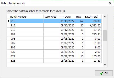 6. Right Click in the background of the list and select Reconcile Settled Transactions. 7. Select the date through which you want to see a list of batches. 8. You will be presented with a list of batches that can be downloaded. Those previously downloaded appear with a checkmark.